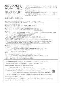 (□を@に変更し、件名を「2026春 ART MARKETあしやつくるば」出店者募集 としてください。)※2月28日(土)郵便、e-mailともに必着